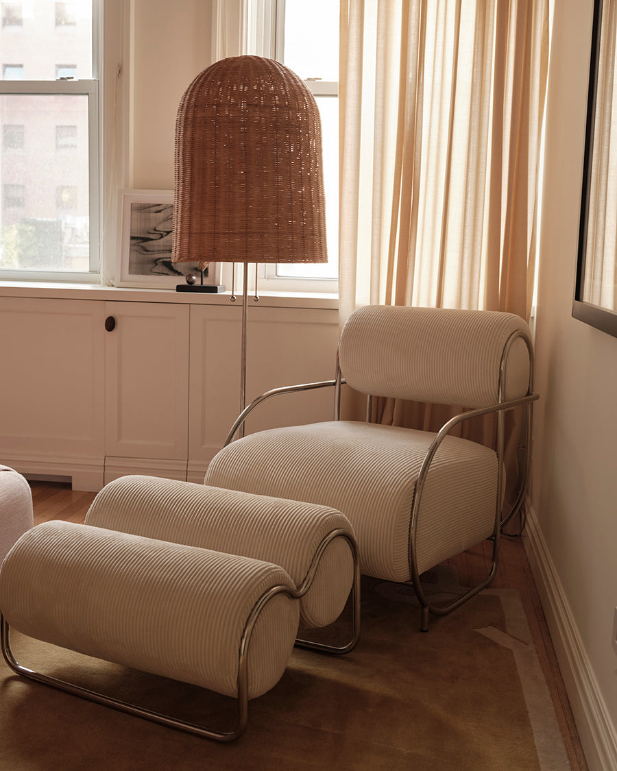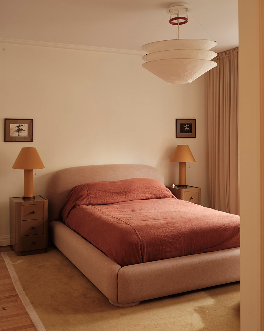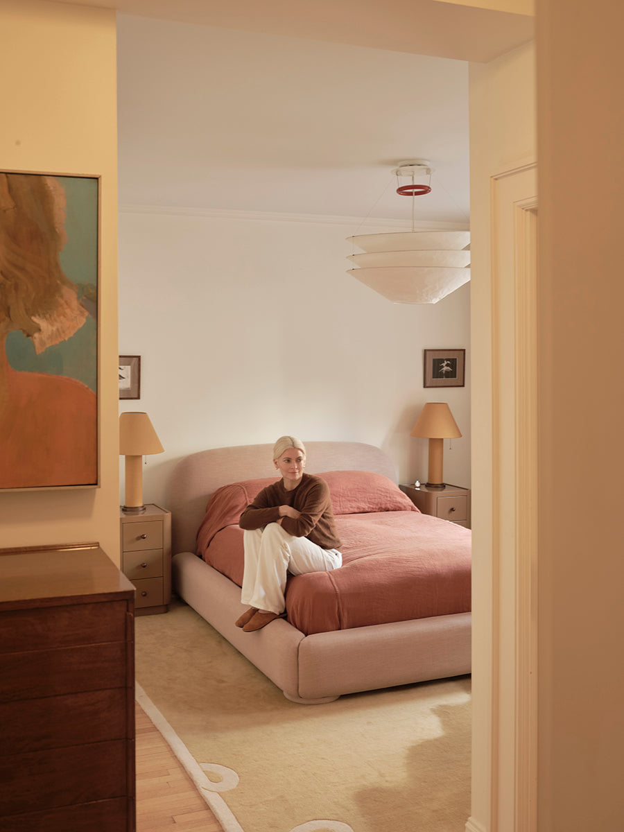At home in New York, her approach to design is similarly considered. The Lull bed in Byron Biscuit anchors the space with soft structure, complemented by the sculptural Chromeo occasional chair and Bell floor lamp. Together, they reflect her instinct for pieces that balance function, comfort and an elevated point of view.