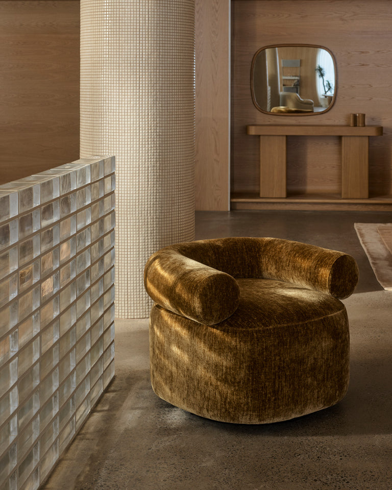 Throughout the 680sqm studio, our own collections sit alongside works from local and international makers - from the luminous glass-brick staircase realised with Brickworks, to lighting and detailing by Studio Henry Wilson, Volker Haug and David Flack, which further echo our appreciation for local design with soul.