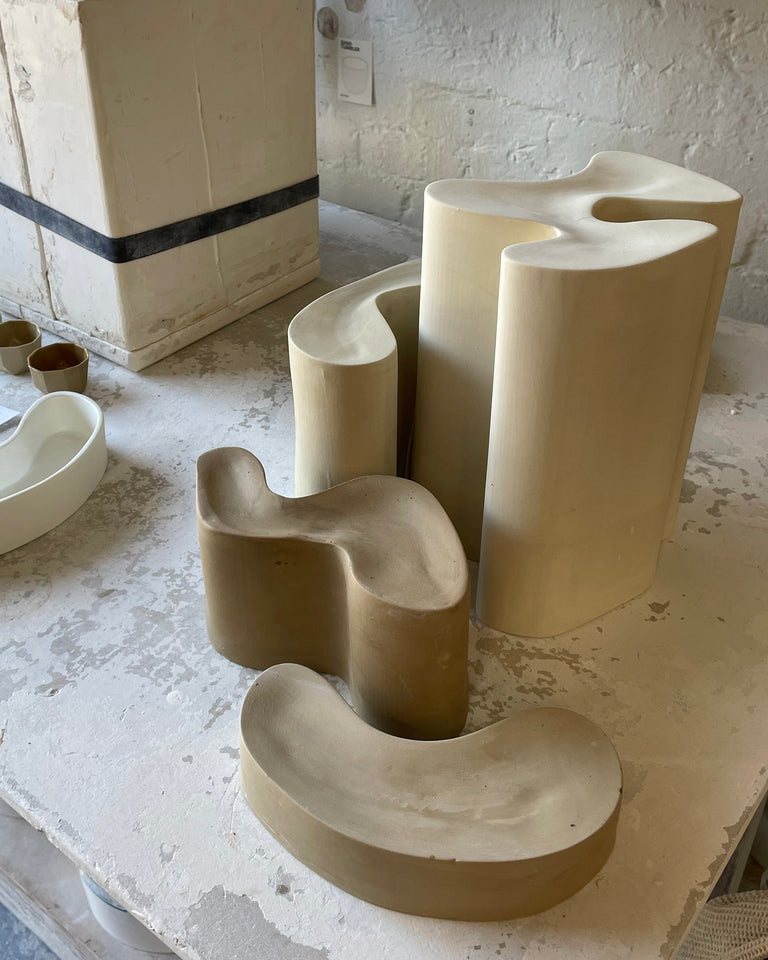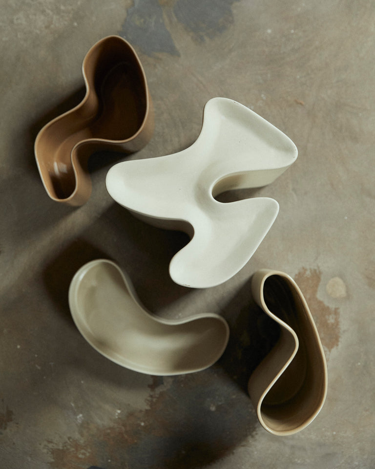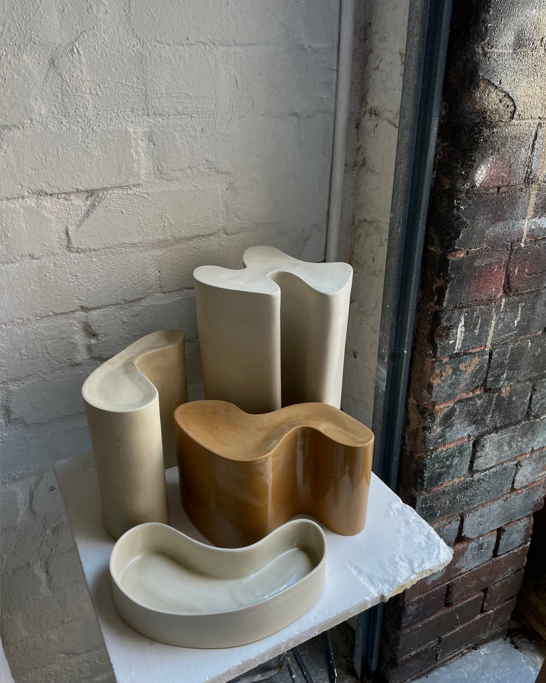 Inspired by the industrial architecture of urban skateparks. Brought to life in collaboration with Australian ceramicist Milly Dent, this collection is a harmonious blend of form and function. Versatile in purpose, these pieces can function as shallow dishes and vases or stand alone as captivating, organic sculptural objects.