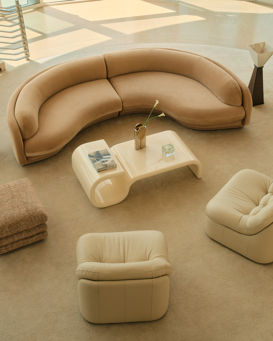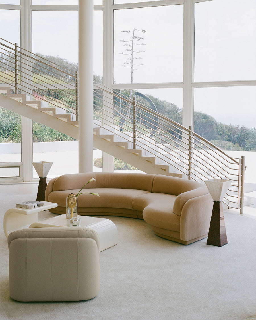 A sculptural sofa that blends the sensuality of the 70s with the decadence of the 80s, Poet was designed in collaboration with interior designer and Los Angeles-based creative director, Tiffany Howell of Night Palm. Its fluid, sweeping curves that flow beyond an offset, asymmetrical frame - create a dynamic interplay of form and balance. Its undulating silhouette draws on Howell's vintage inspirations, reimagined through Ellison Studios' contemporary lens for modern living.