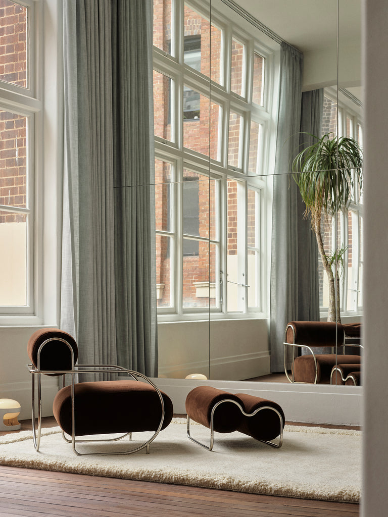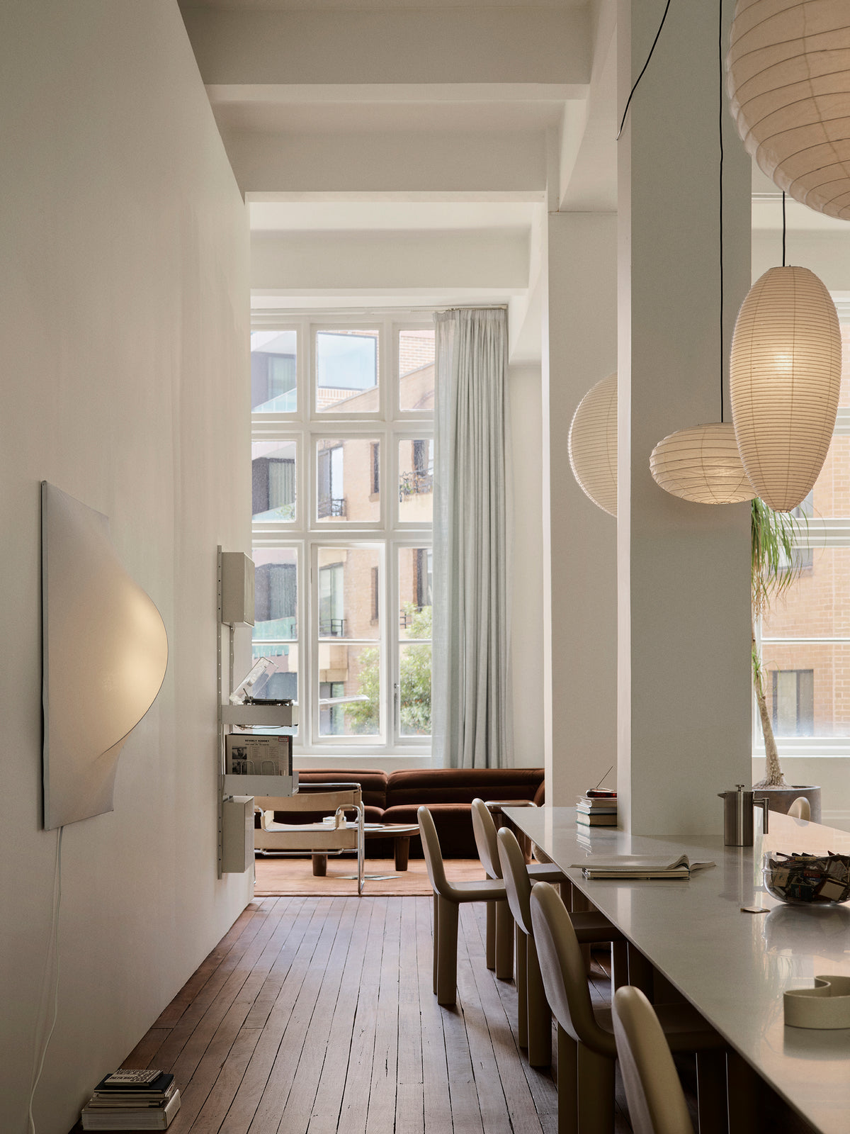 Welcome to the next iteration of our storied space inside a Sydney design icon. Our playful and immersive brand space in the creative city-fringe enclave of Surry Hills has been updated with some of our most iconic pieces. This whole-level residential loft straddles the line between art installation and concept space with its five-metre high floor-to-ceiling windows and century old hardwood floors.