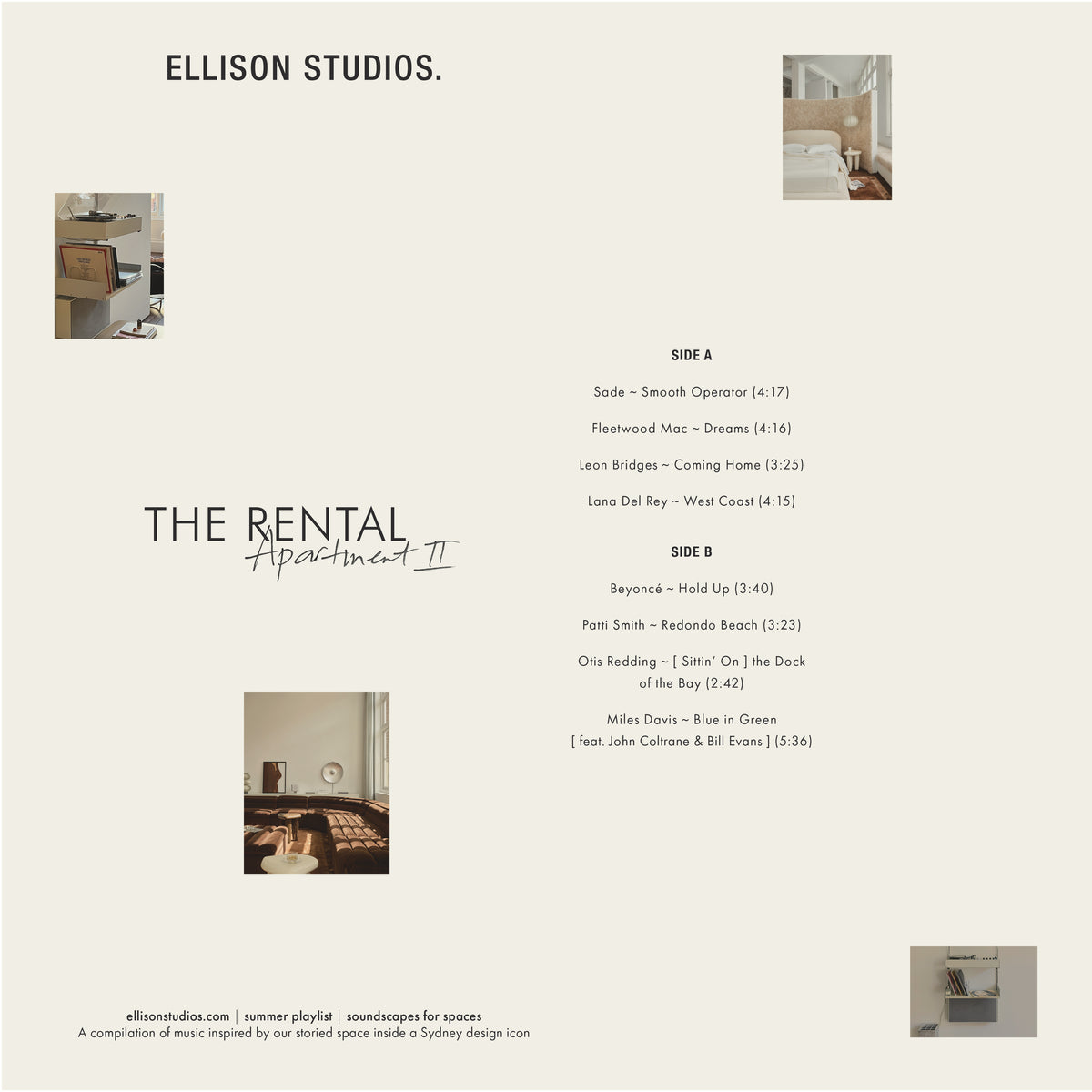 Enjoy a playlist inspired by the library of vinyls gifted by friends frequenting The Rental over the Australian summer. THE RENTAL / APARTMENT II playlist is your holiday soundtrack best played on repeat for endless summer vibes.