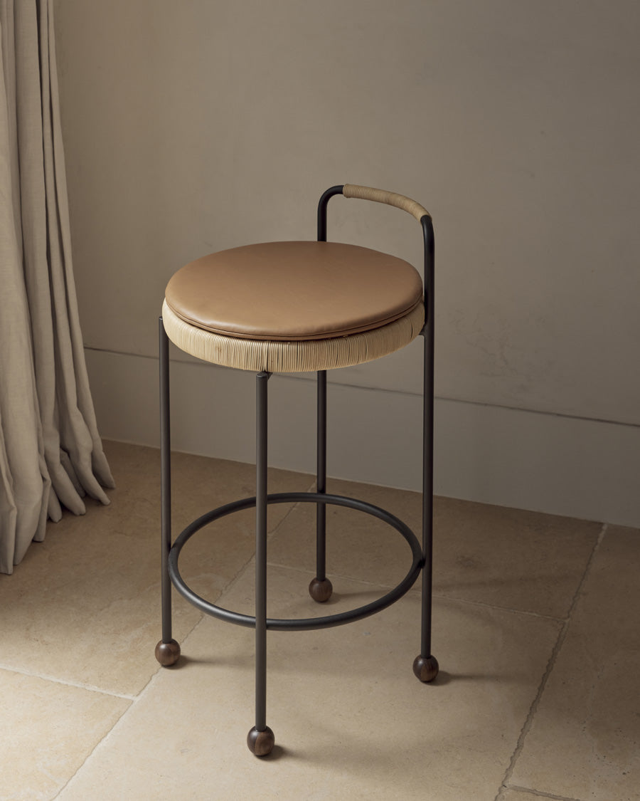 - Powder-coated steel frame finished with hand-wrapped woven rattan detail